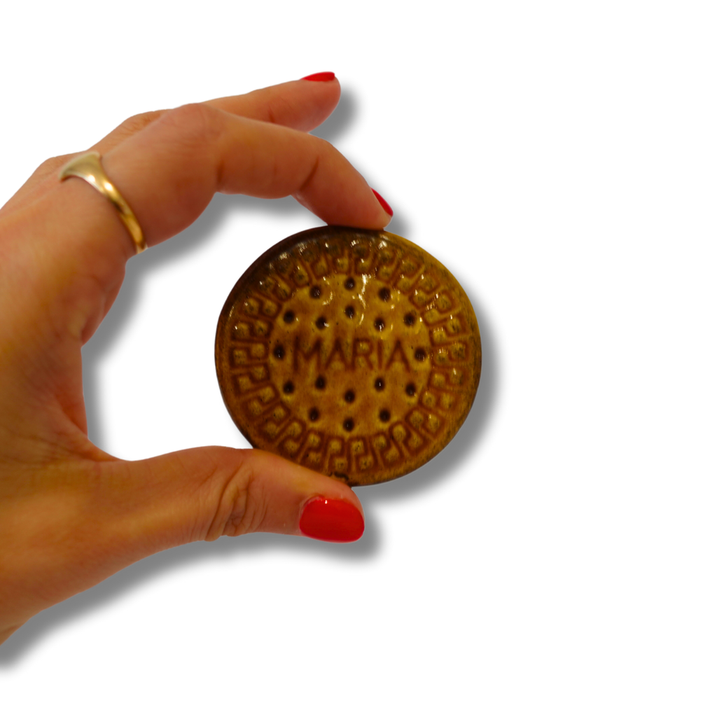 Bring a touch of Portuguese tradition to your kitchen with this charming ceramic Maria Cookie fridge magnet, handcrafted in Portugal. Inspired by the iconic Maria biscuit, a beloved staple in Portuguese households, this unique and detailed magnet is perfect for adding a fun, cultural accent to your refrigerator. Made with care and attention to detail, it makes an ideal keepsake or gift for those who appreciate artisanal crafts and Portuguese culture. Elevate your home decor with this authentic Portuguese ceramic piece