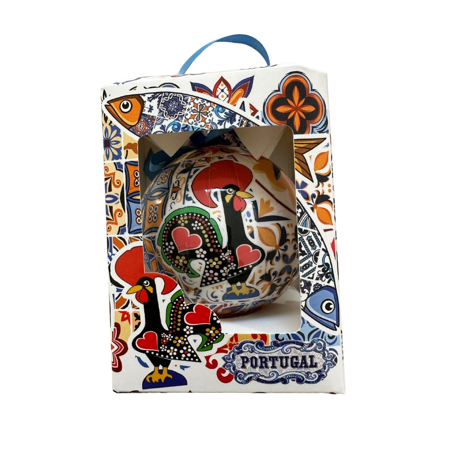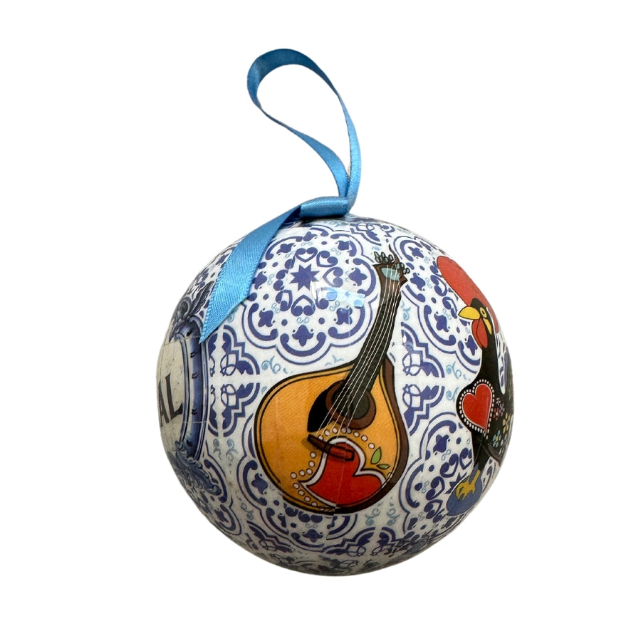 Add a touch of Portuguese tradition to your Christmas tree with this stunning handcrafted Christmas ball. Featuring the iconic patterns of Portuguese tiles and beloved symbols such as the Portuguese guitar, sardines, and the Barcelos rooster, this ornament beautifully captures the essence of Portugal. Made with care, it’s perfect for anyone who loves unique and meaningful decorations.