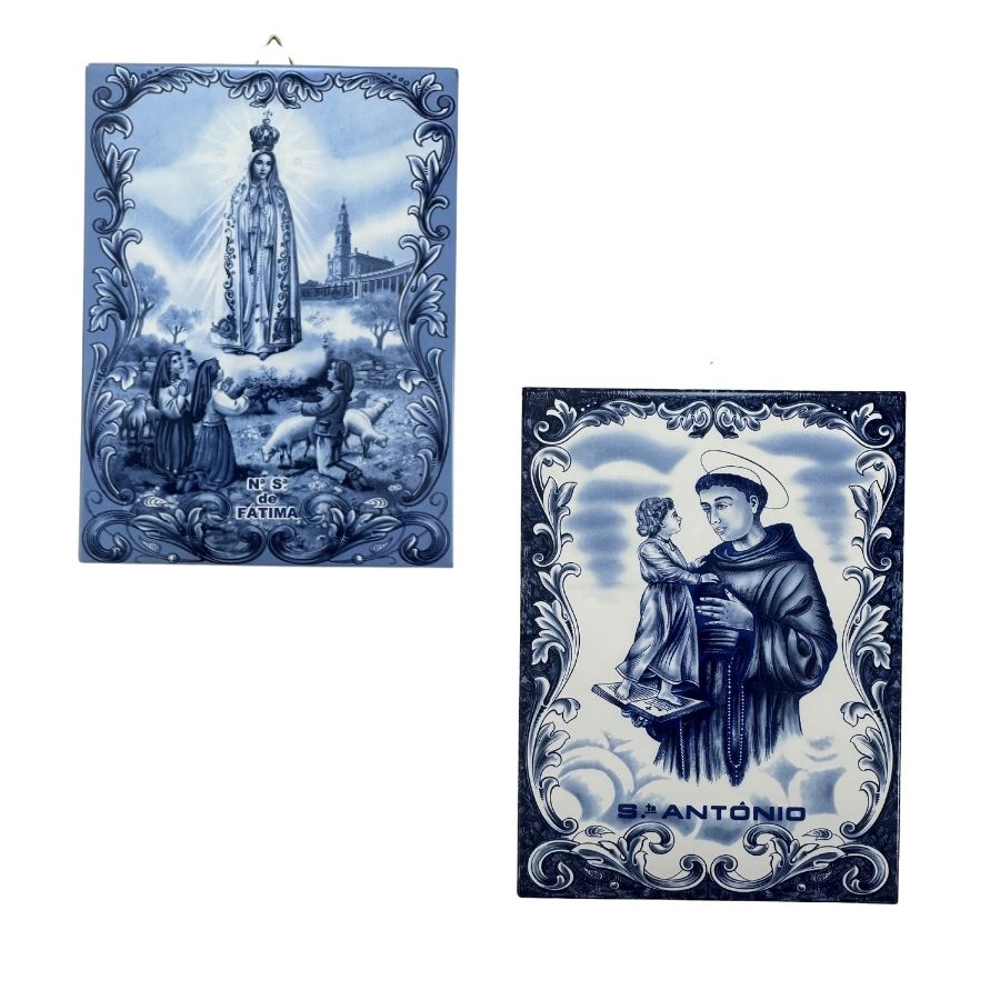 Celebrate spirituality and tradition with these Portuguese sacred art tiles, hand-painted with images of Our Lady of Fátima and Saint Anthony. Ideal for wall decoration in religious spaces, chapels, or your home, these tiles are perfect for moments of prayer and meditation, especially on religious occasions like All Saints' Day and Christmas. Each tile reflects Portugal's cultural heritage, combining religious devotion with the beauty of traditional Portuguese craftsmanship.